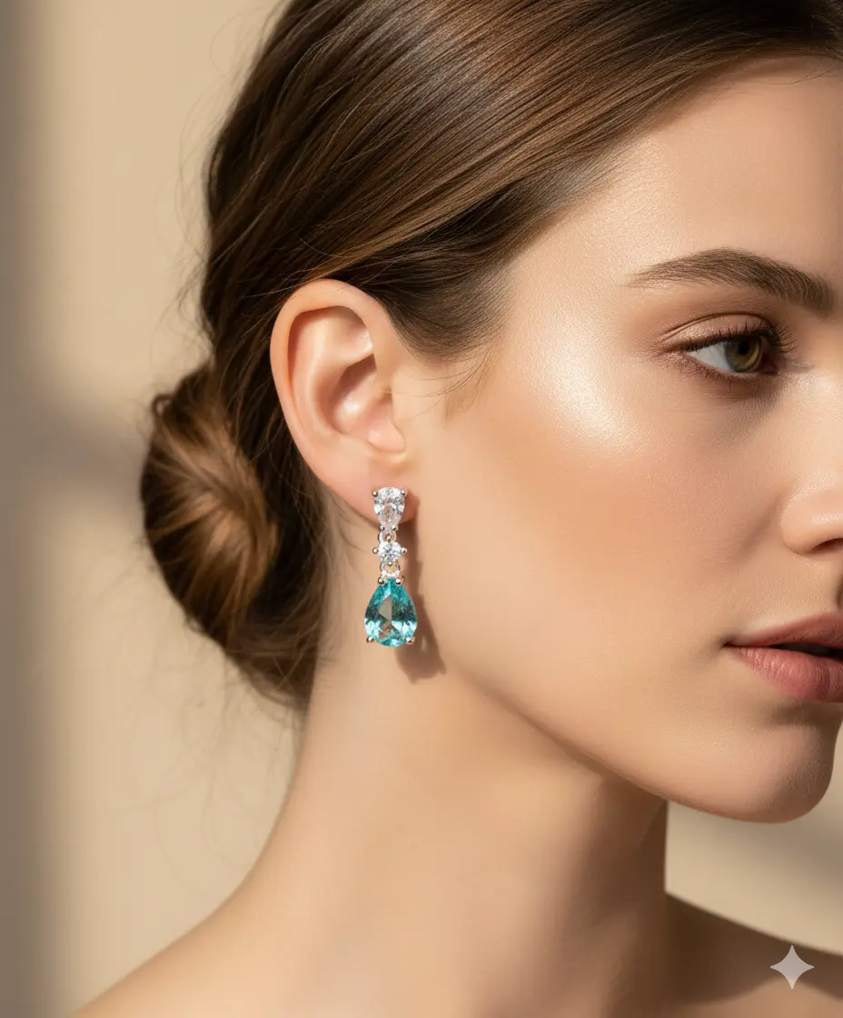 Déjate seducir por el brillo y la elegancia de nuestros aros "Gotas del Alba" . Estos pendientes, elaborados en plata 925, presentan un diseño delicado y sofisticado. Cada arete está adornado con dos circones cúbicos (cubic zirconia) : uno de corte lágrima en un refrescante tono azul celeste , que evoca la pureza del agua, y otro superior más pequeño y brillante en color blanco cristalino . La combinación de estos cortes y colores crea un movimiento sutil y un resplandor que ilumina tu rostro Son la pieza perfecta para añadir un toque de color y distinción, ideal para eventos especiales o para un look diario lleno de encanto.