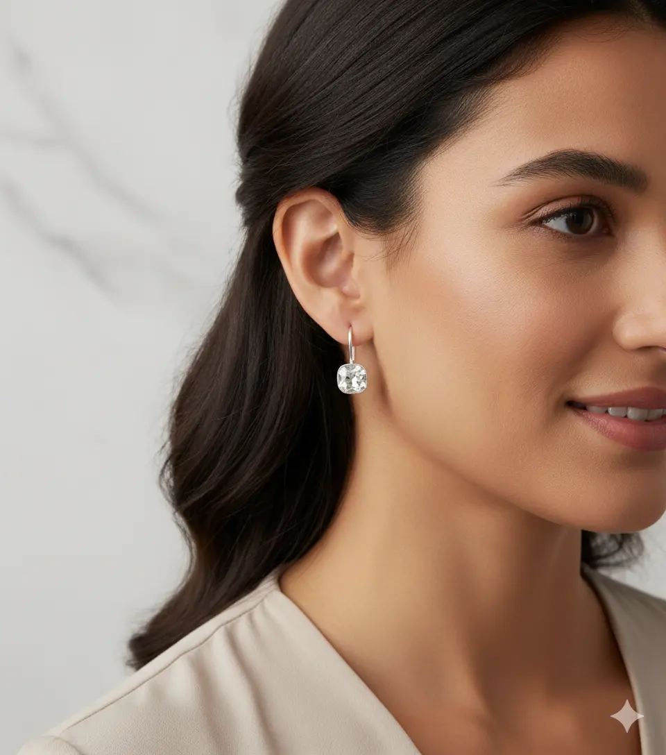 Estos aros de plata 925, realzados con deslumbrantes circonitas cúbicas cuadradas, son la personificación de la elegancia y el brillo. Cada gema está meticulosamente engarzada para capturar y reflejar la luz con una intensidad comparable a la del diamante, ofreciendo un lujo accesible y sofisticado para cualquier ocasión. Su cierre seguro los hace cómodos para usar todo el día.