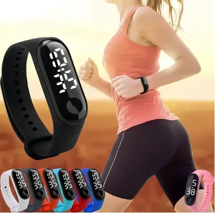 Reloj digital deportivo con pulsera de silicona, disponible en varios colores. Muestra hora y fecha en pantalla LED de fácil lectura. Ideal para uso diario, cómodo, liviano y práctico para todas las edades.